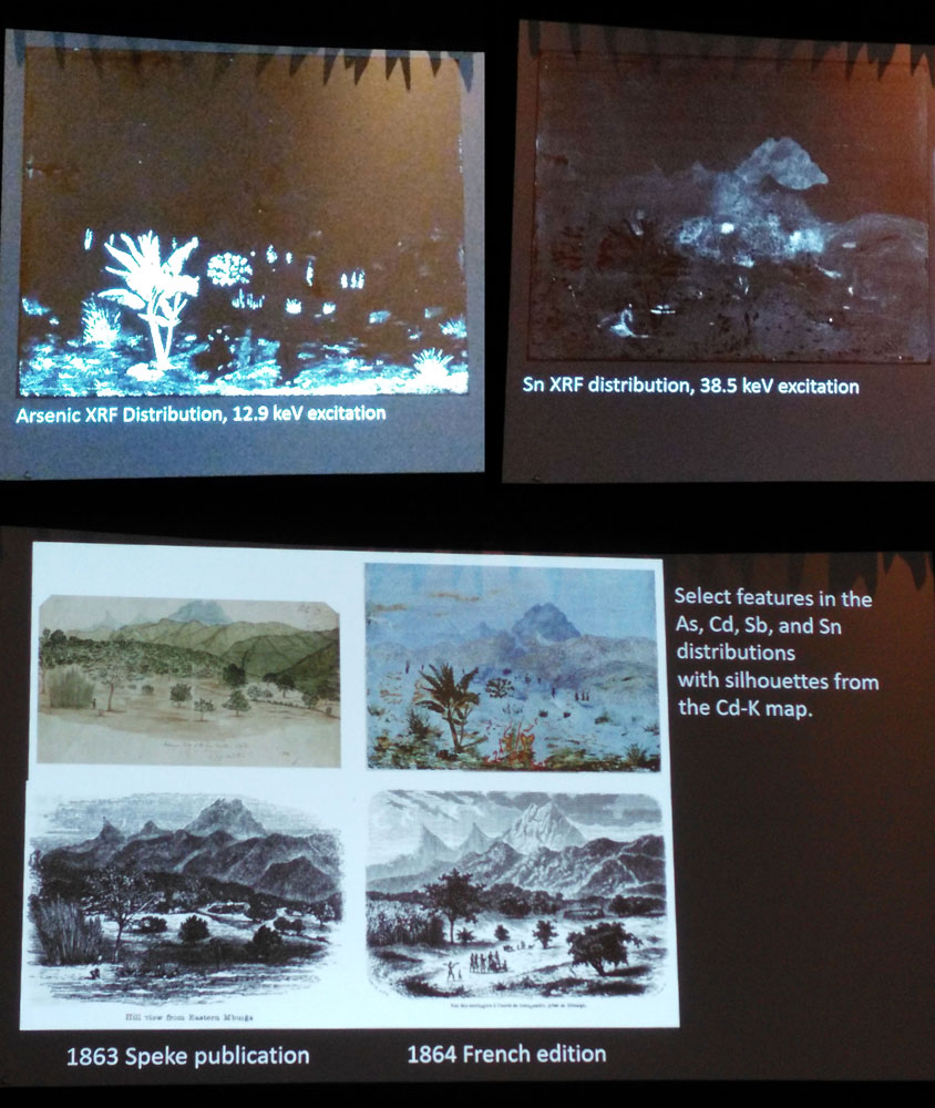 AIC slides that show: (top) the MA-XRF distribution of arsenic and tin containing pigments in the NAMA panel painting