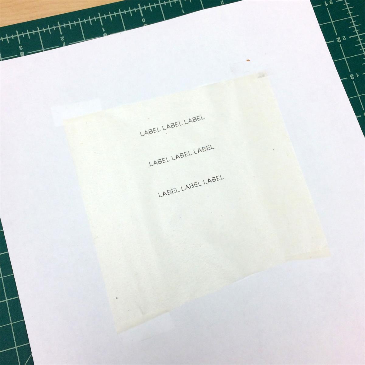 We have also used printed lightweight tissue labels as Roger described; note you may need to tape the tissue to a carrier sheet of printer paper to prevent jamming in the printer.