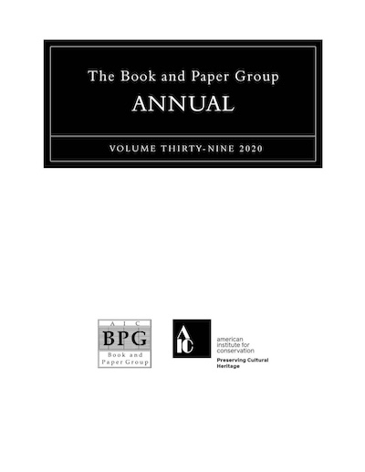 Engel, Patricia, Matthew Collins, Sarah Fiddyment, Carla Soto, Matthew Teasdale, and Jiri Vnoucek. 2018. "Improved Methods of Authentication and the Resulting Shifts in Decision–Making in Parchment Conservation." Book and Paper Group Annual 37: 21-29.